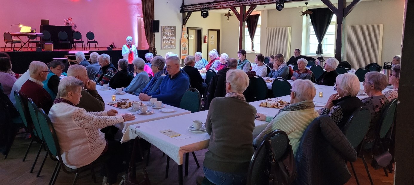 Ich habe mich wirklich sehr gefreut, dass zahlreiche Senioren die Einladung zu Kaffee und Stollen angenommen haben. Herr Kowalow vom ASB informierte über das Angebot des „Sozialen Pflegelotzen“ zur Unterstützung im Alltag.