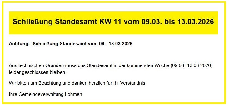 Als besondere Serviceleistung stehen Ihnen die Lohmener Standesbeamten auch außerhalb der Dienstzeiten zur Verfügung, allerdings sind diese nur mit vorheriger Absprache möglich.